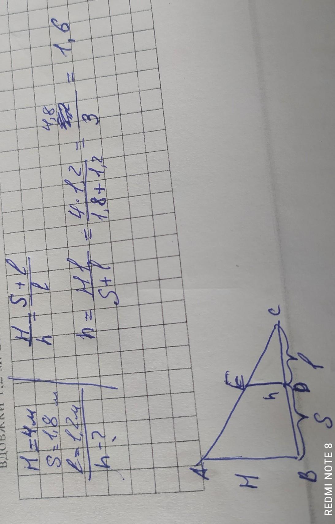 Людина що стоїть на відстані 1,8 м від ліхтаря заввишки 4 м, відкидає тінь за вдовжки 1,2 м. Визначте зріст людини