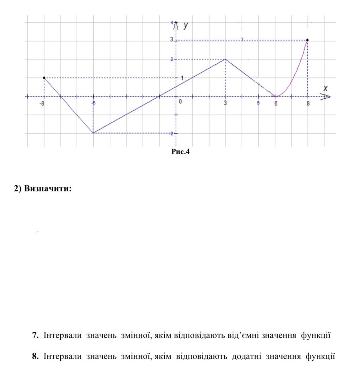 Определить: 7) интервалы значений переменной, которым соответствуют отрицательные значения функции 8) интервалы значений переменной, которым соответствуют положительные значения функции