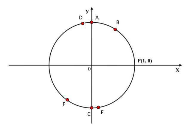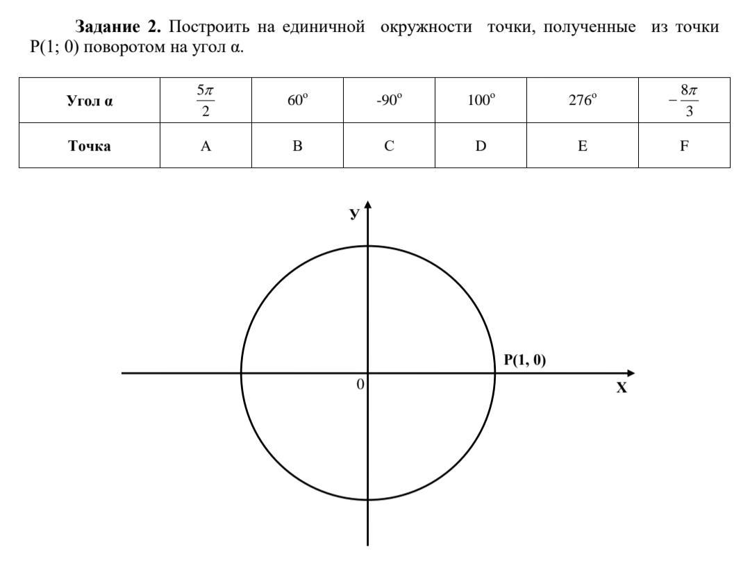 построить на единичной окружности точки полученные из точки P(1;0) поворотом на угол a.