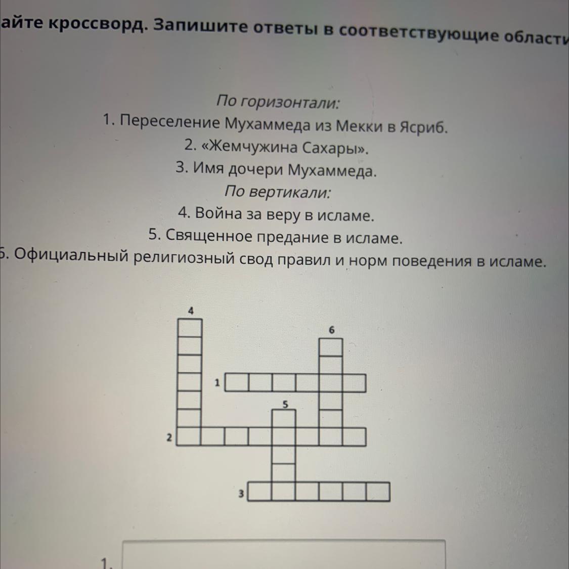 1.Хиджра; 2.Томбукту; 3.Фатина; 4.Джихад; Сунна; 6.Шариат.