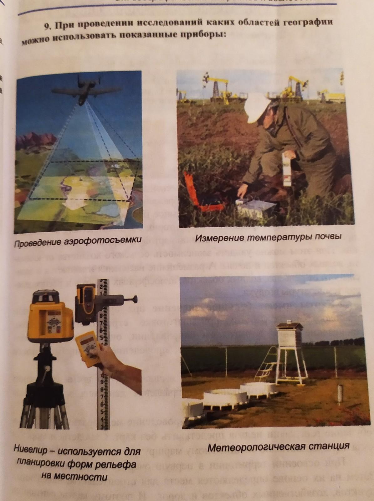 Ответ: На метеорологической станции измеряют температуру, Нивелир используют для проведения аэрофотосъемки