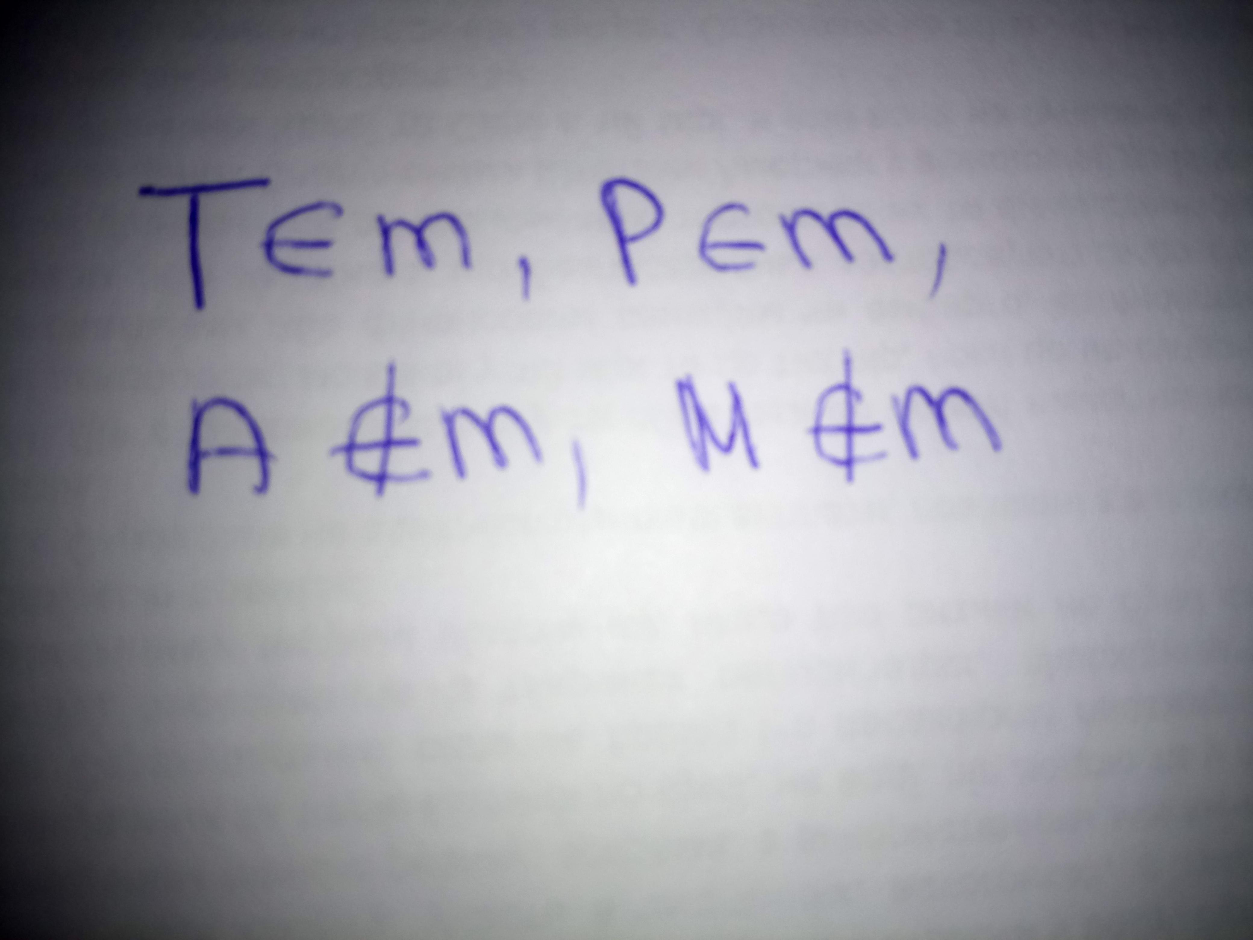 Точки A, M не лежат на прямой m. А вот точки T, P лежат на ней.