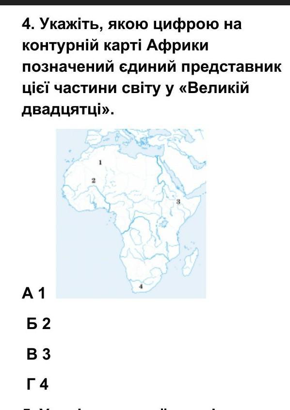 4. Укажіть, якою цифрою на контурній карті Африки позначений єдиний представник цієї частини світу у «Великій двадцятці»