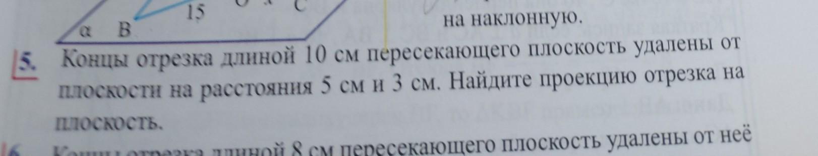 УМОЛЯЮ!!!!!!!!!!!!! КТО ТОЧНО ЗНАЕТ? Концы отрезка длиной 10 см Пересекающего плоскость удаленны от плоскости на расстоянии