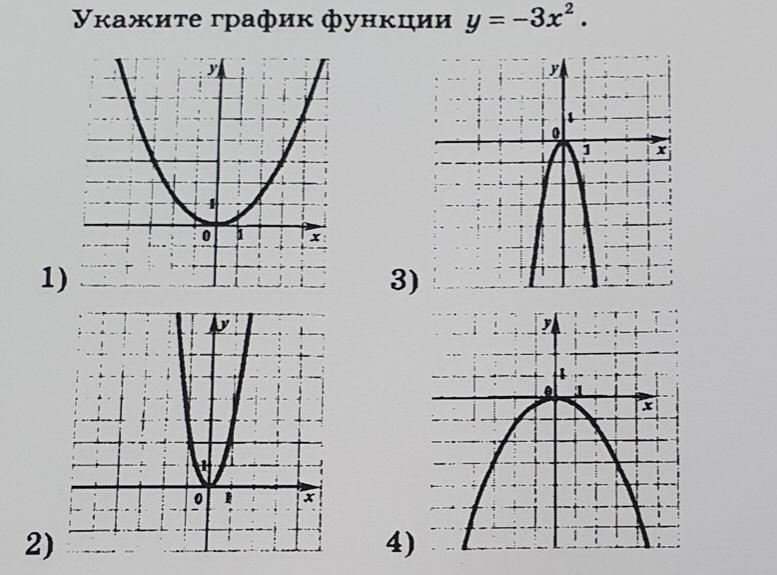Чем меньше стоит число, рядом с х2, тем шире функция. Если число больше одного, значит функция будет узкой. Ответ 3