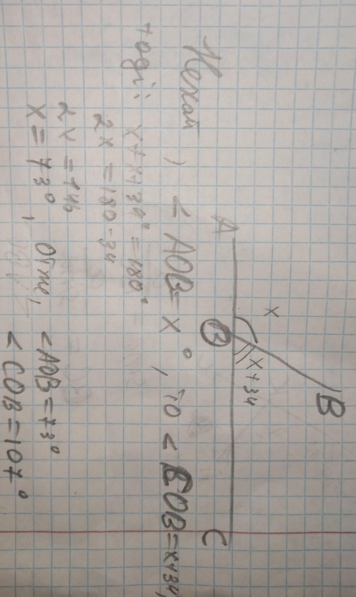 Нехай перший сум. кут - х градусів, а другий сум кут - х + 34 градуса