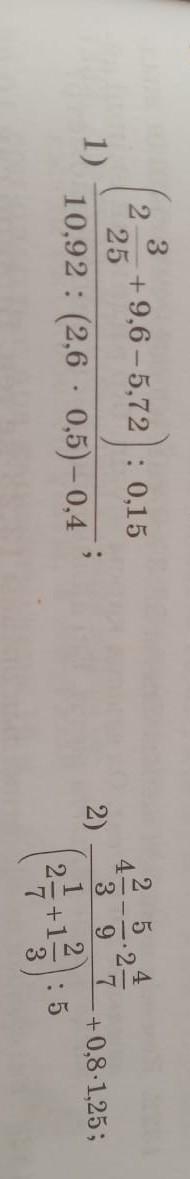1) 2 3/25 + 9,6 = 2,12 + 9,6 = 11,72 ; 5) 10,92 : 1,3 = 8,4 ;