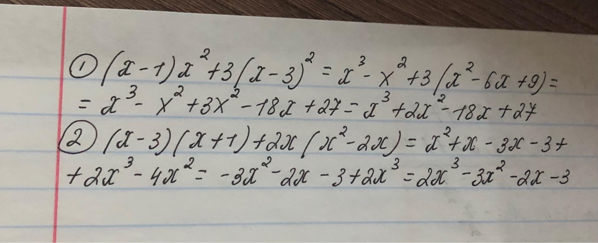 Запишите в виде многочлена стандартного вида выражение 1. (х-1)х²+3(х-3)² 2. (х-3)(х+1)+2х(х²-2х)
