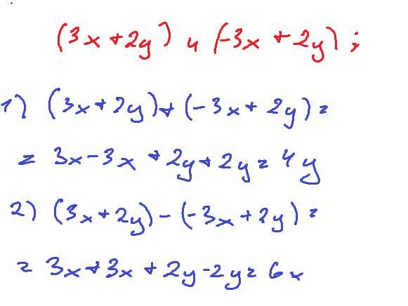 (3x+2y)+(-3x+2y)=3x+2y-3x-2y(сказачиваеться ) =0