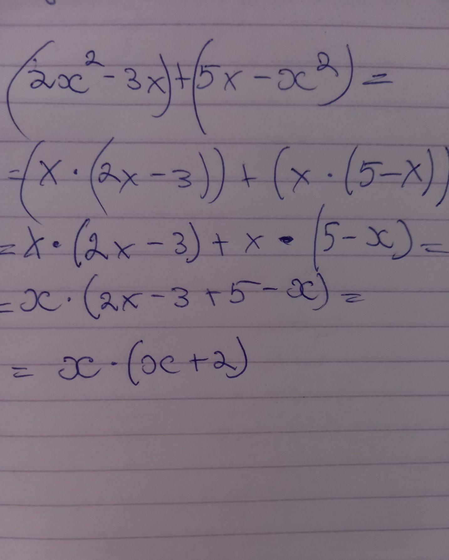 Сума: (2x²-3x)+(5x-x²)=2x²-3x+5x-x²=2x²-x²-3x+5x=x²+2x