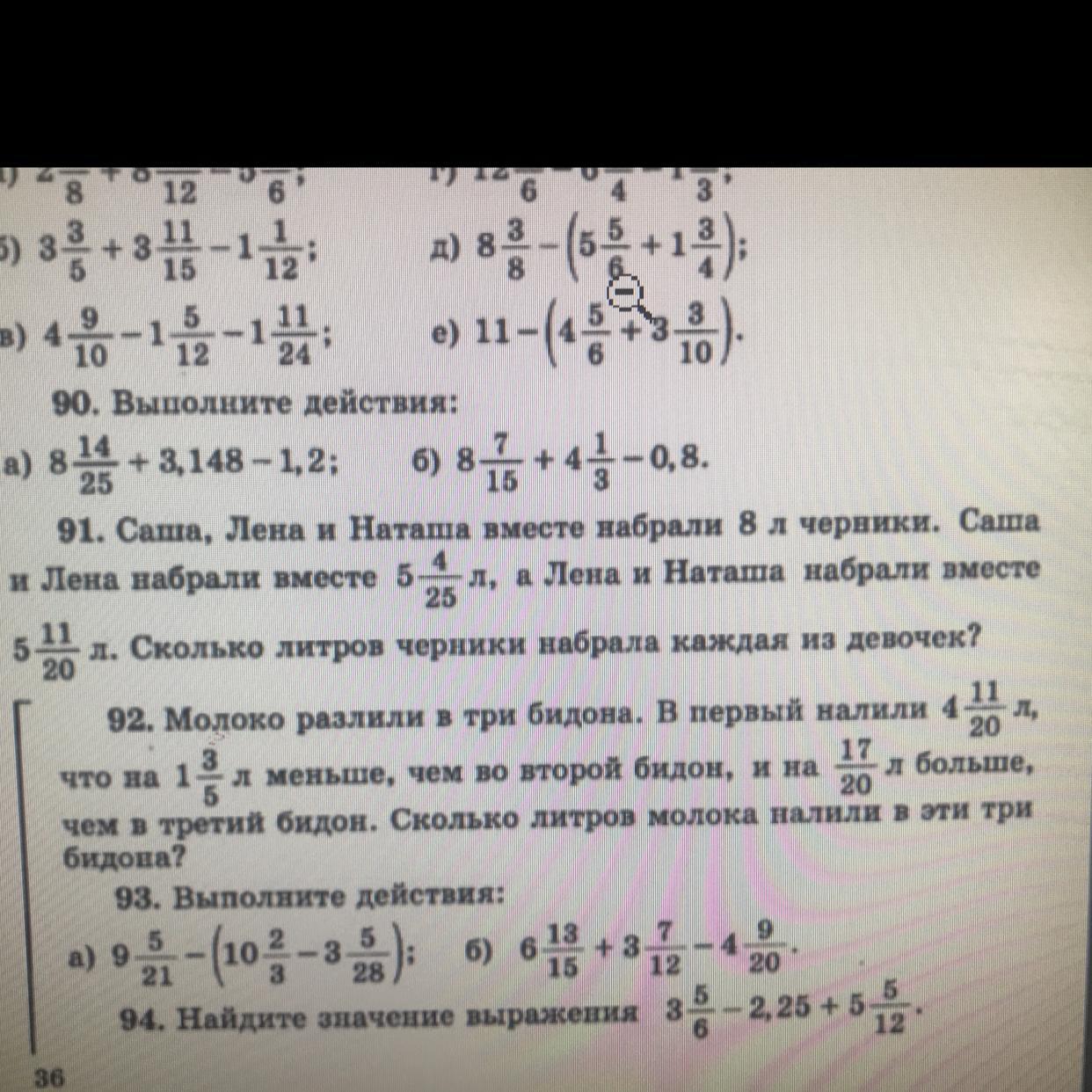 91. саша ,лена и наташа вместе набрали 8л черники. Саша и Лена набрали вместе 5 целых 4/25л ,а лена и наташа набрали вместе 5 целых 11/20 л . Сколько литров черники набрала каждая из девочек? ТОЛЬКО ОТВЕТ!!!
