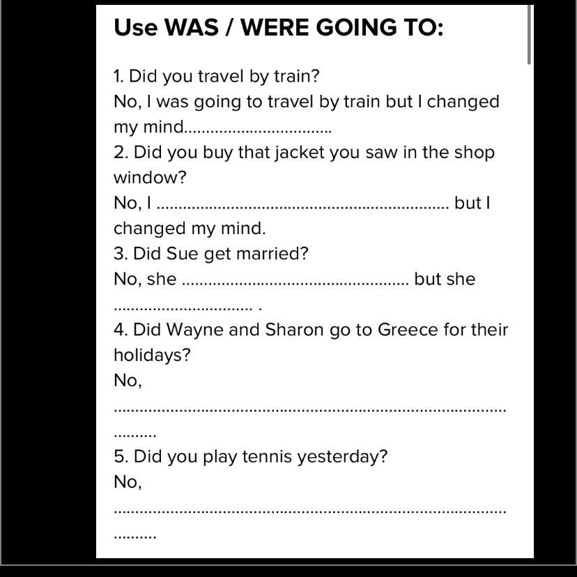 1.wasn't 2. wasn't. 3 wasn't 4 (скорее всего) weren't 5. wasn't