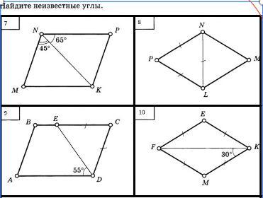 Углы в триугольнике равны 180 градусов, поэтому углы NMK и NPK равны = 180-45-65=70 градусов.