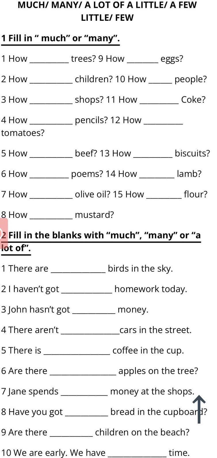 2) Fill in the blanks with “much”, “many” or “a lot of”.
