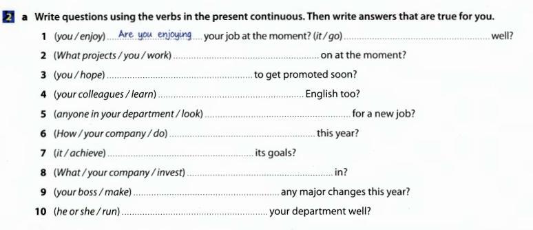 Напишите вопросы используя глаголы в Present Continuous. Затем напишите ответы для них