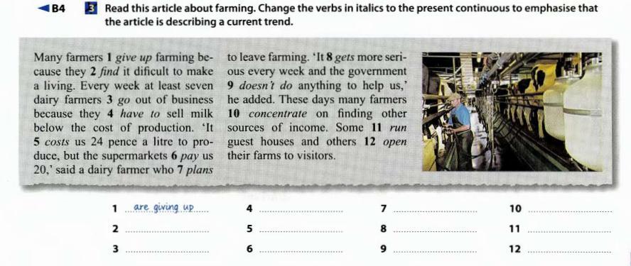 Прочтите эту статью о сельском хозяйстве. Измените глаголы, выделенные курсивом, на Presenr Continuous чтобы подчеркнуть что статья описывает текущую тенденцию