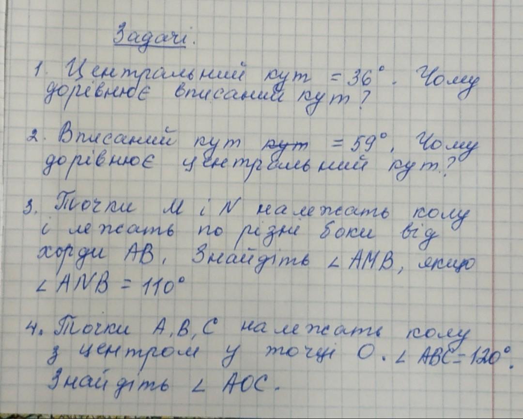 4 кут ABC вписаний у коло таким чином, вiн дорівнює половині дуги, на якій вiн спирається => дуга AC = 120*2=240, кут AOC центральний таким чином вiн дорівнює дуги, на якій вiн спирається => кут AOC = 240гр