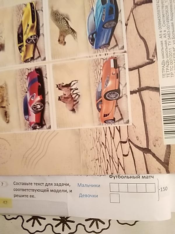 Текст для задачи: На футбольном матче всего 150 человек, из которых 1/6 часть девочки и 5/6 мальчики. Сколько девочек на футбольном матче? Мальчиков?