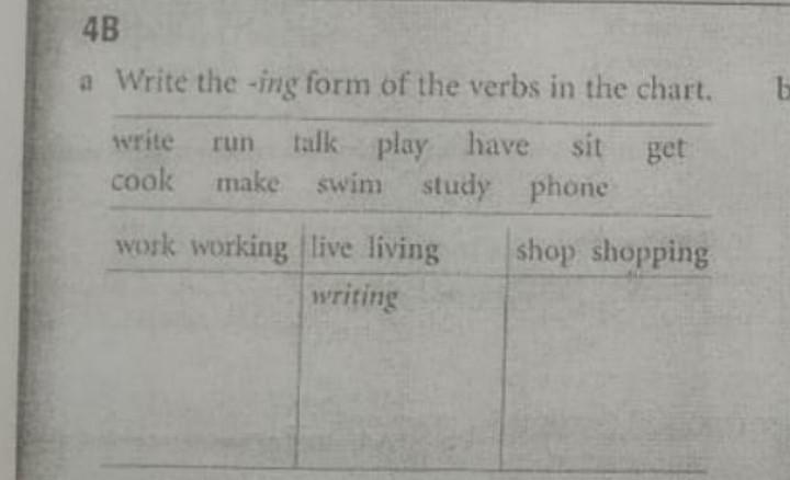 running, talking, playing, having, sitting, getting, cooking, making, swimming, studying, phoning