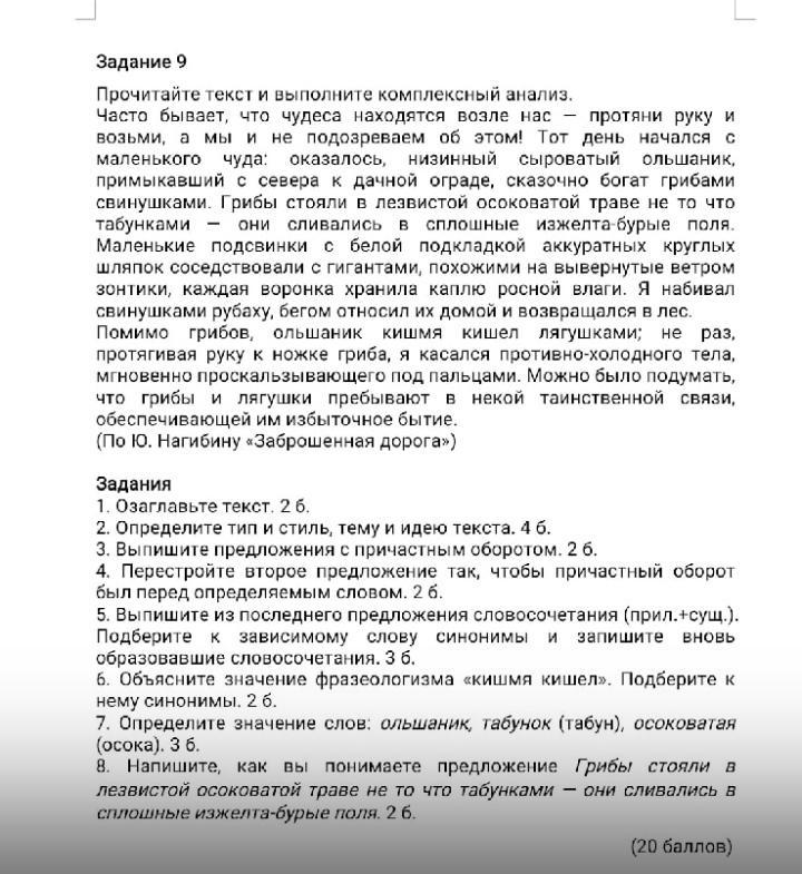Ответ: Тот день начался с маленького чуда: оказалось, примыкавший с севера к дачной ограде низинный сыроватый отшельник сказочно богат грибами свинушками.