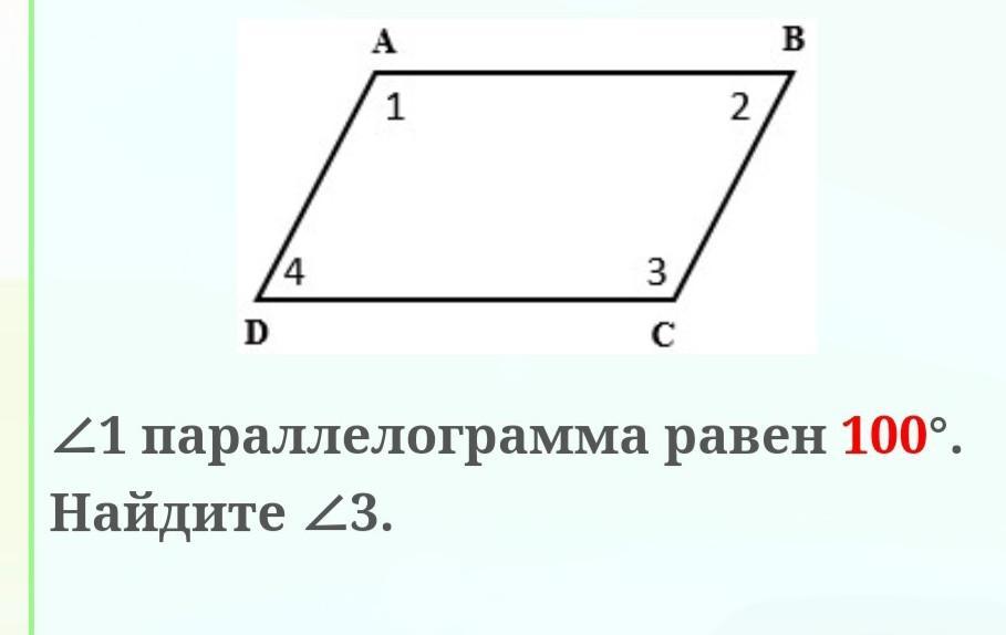 угл 1 параллелограмма равен 100°.Найдите угл3 .СРОЧНООО ПОМОГИТЕЕЕЕ РЕШИТЬ