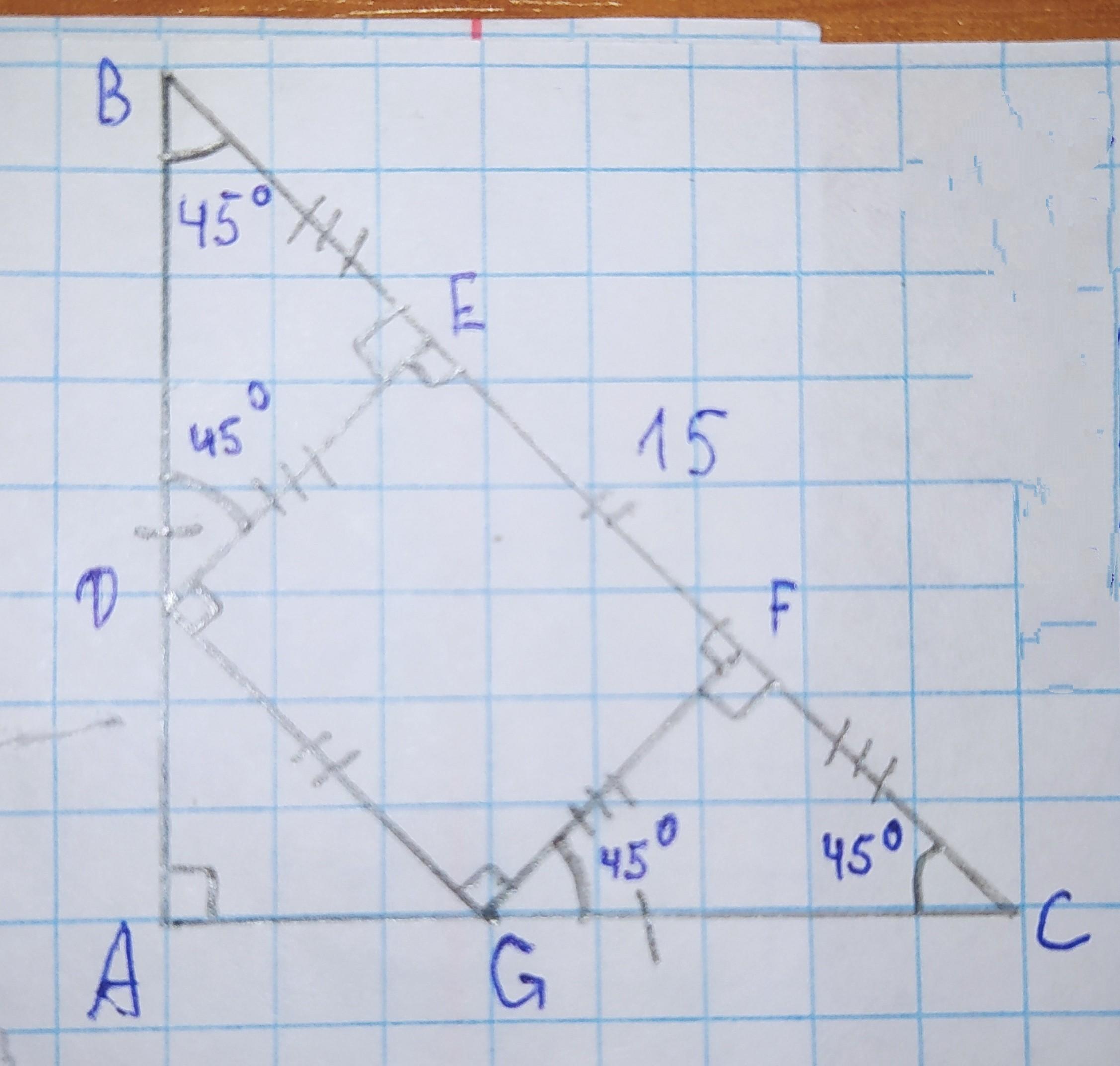 Треугольники DBE и GFC равнобедренные с основами BD и GC соответственно.