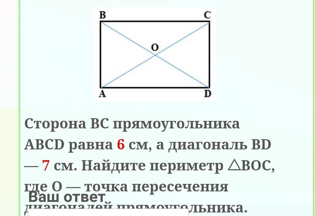 BO = OC = 0.5 × 7 = 3.5 (см)