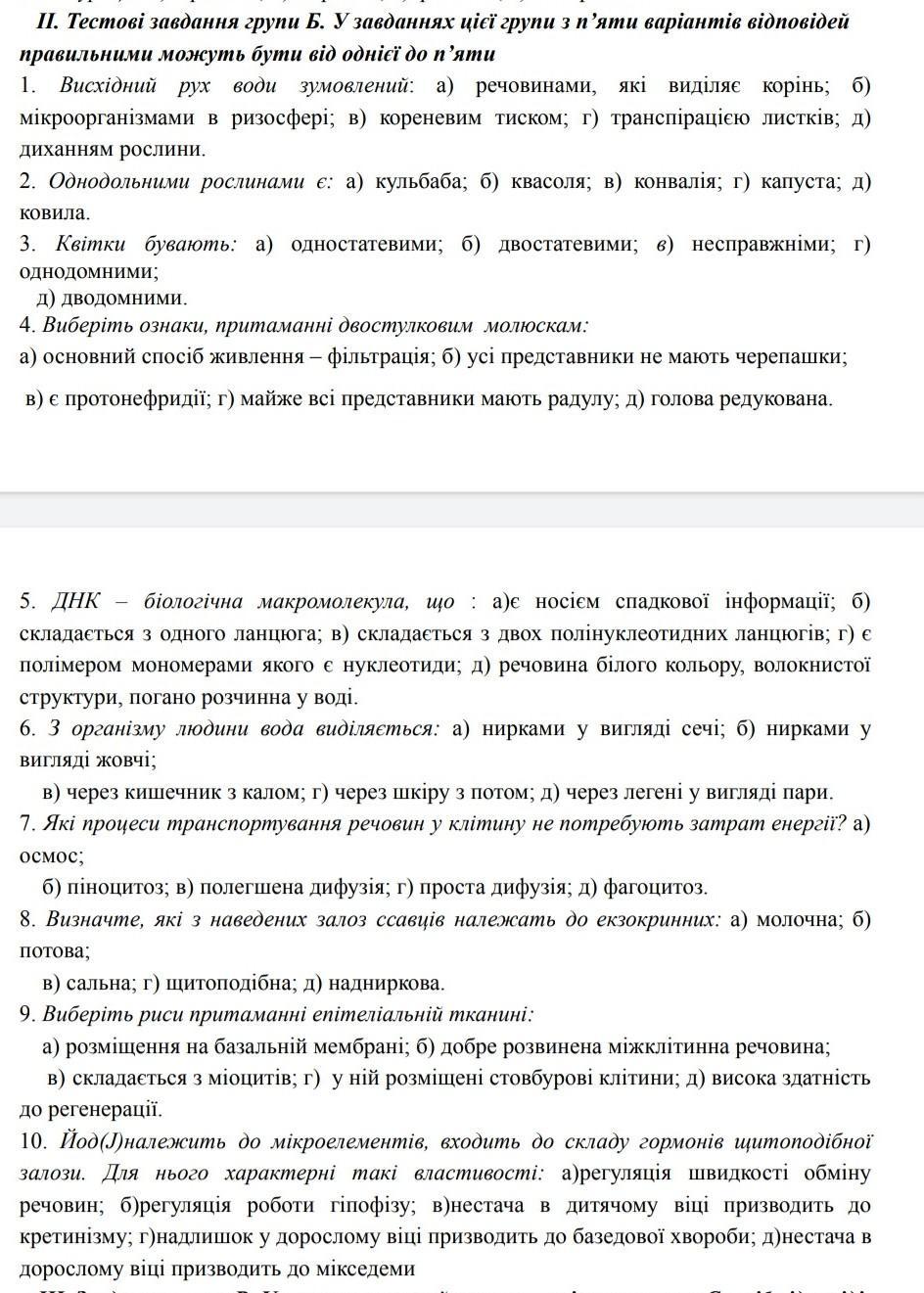 В цих завданнях з п'яти варіантів відповідей, правильною може бути від одної до п'яти правильних відповідей.