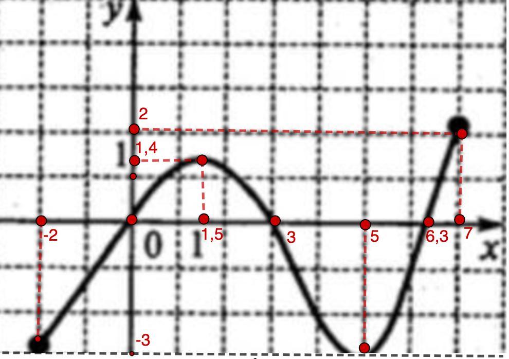 Г) Функция взрастает при х∈[-2; 1,5]∪[5; 7]