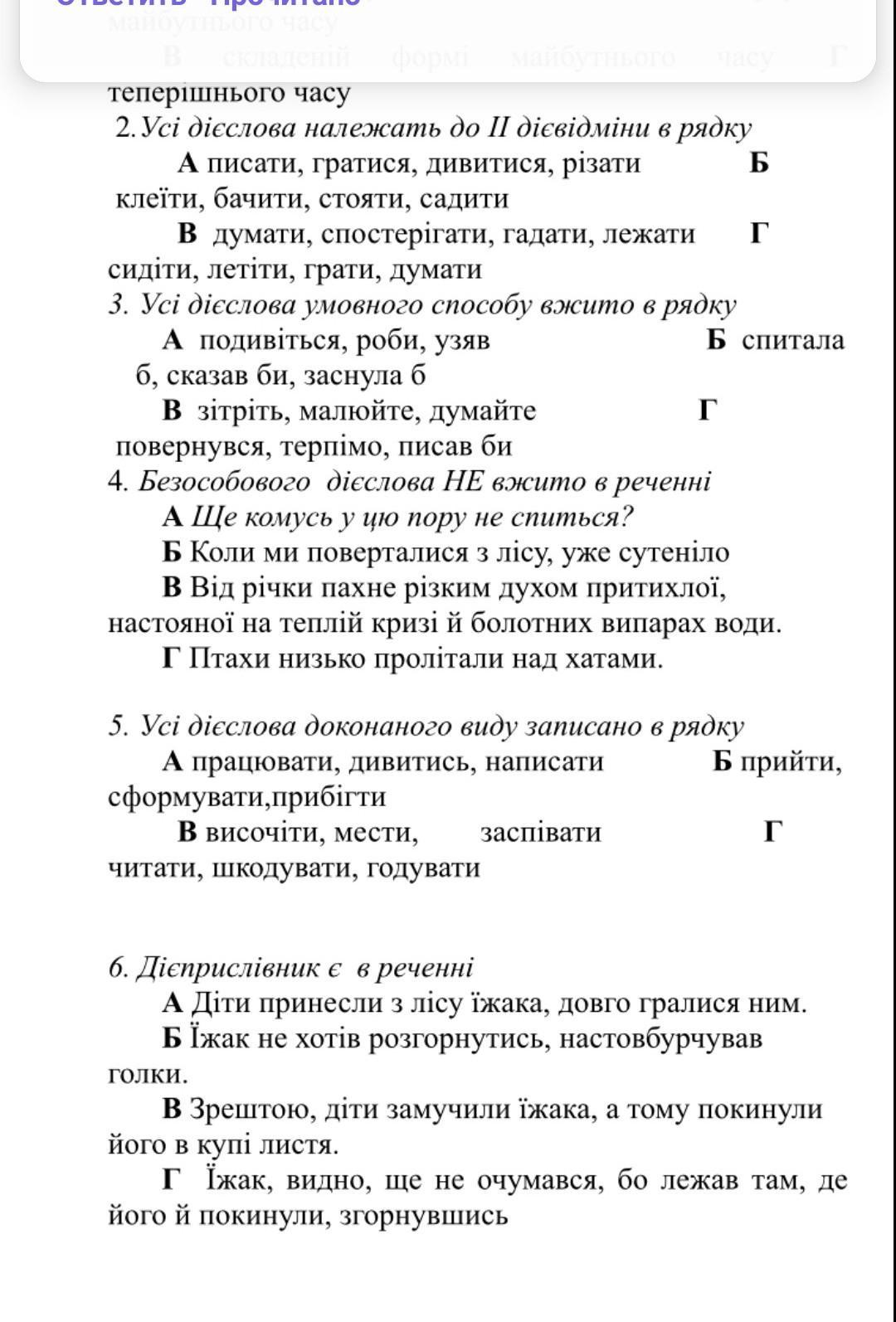 ответы на тест