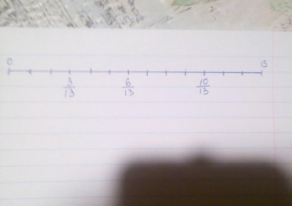 Начертите отрезок и разделите его на 13 равных частей.Отметьте на данном отрезке 3/13 6/13 10/13.