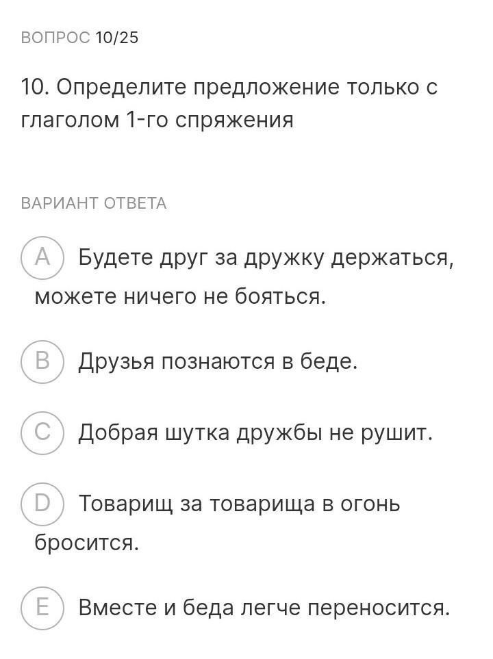 В) Друзья познаются (1 спр., от познавАТЬся) в беде.
