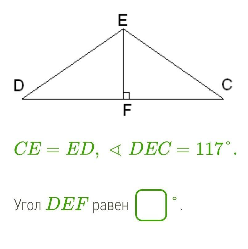 DEF=DEC/2=58.5 (тк высота в равнобедренном треугольнике является биссектрисой и медианой)