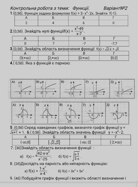 8 . a ) f( x ) = ( 1 - x² )/( x - 4 ) - ні парна , ні непарна функція ;