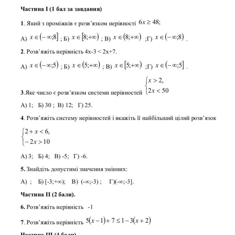 7. 5(х-1)+7 ≤ 1-3(х+2)