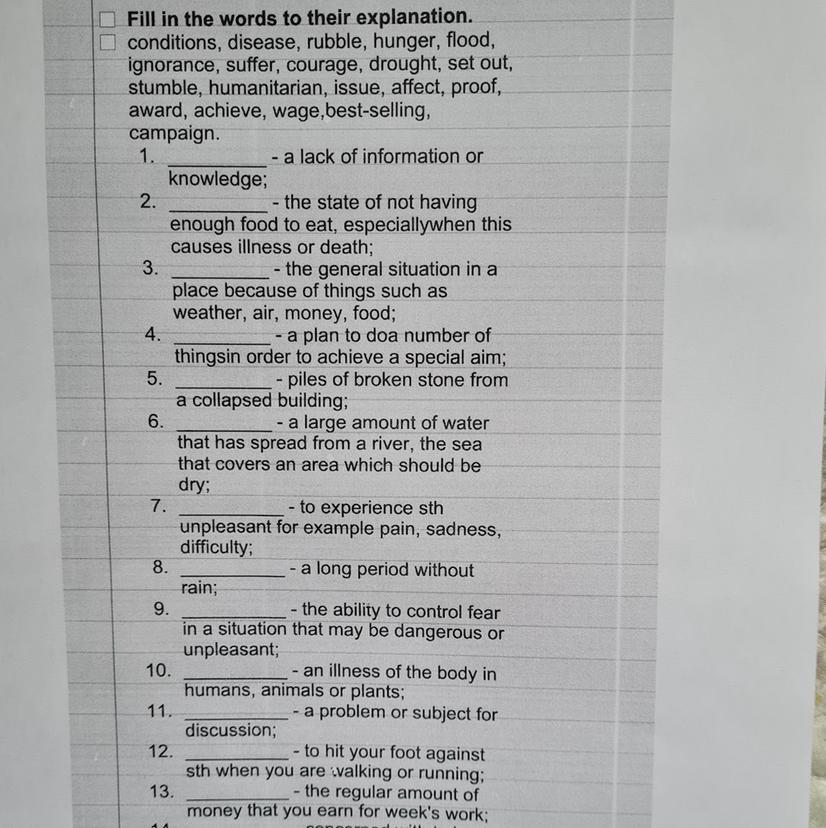 1 conditions 2 hunger 3 awarb
