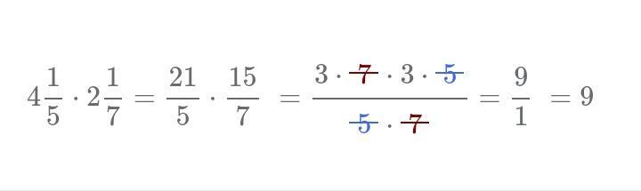 Ответ:сначало в неправильную дробь сделайте потом сократите 4,1/5 • 2,1/7 = 21/5• 15/7= сокращаем 15 и 5 и 21 и 7 и 3 • 3 ответ 9