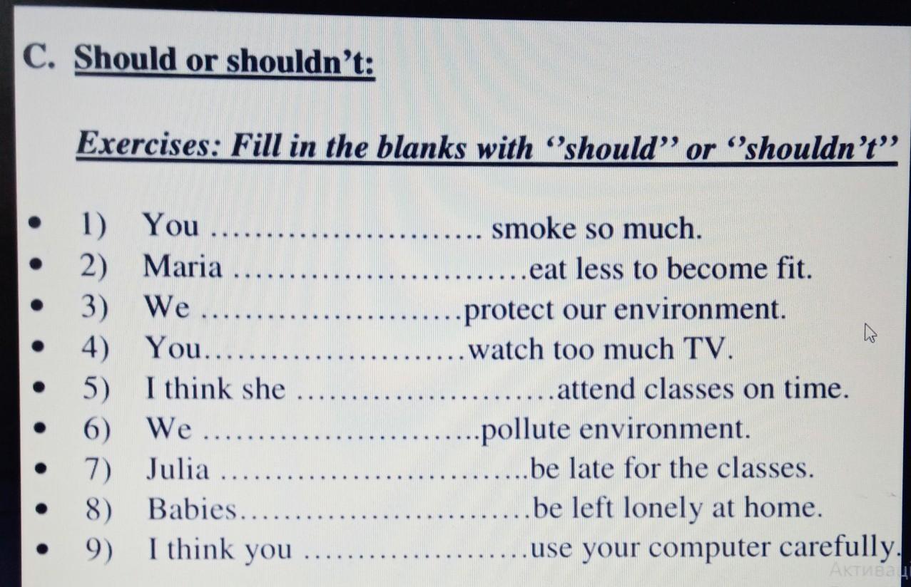 should - должен\на shouldn't - не должен\а, или стоит...