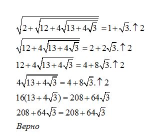 В записи можно пропускать некоторые промежуточные шаги, так как они, в общем-то, очевидны. Мы последовательно представляем подкоренные выражения в виде квадратов и убираем соответствующий корень.