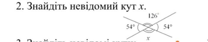 Невідомий кут 126 градусів. За властивістю вертикальних кутів.