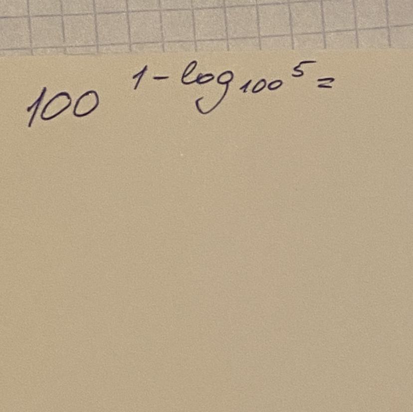\displaystyle\bf\\100^{1-\log_{100} 5} =100^{1} \cdot100^{-\log_{100} 5} =100\cdot100^{\log_{100} 0,2} =100\cdot0,2=20