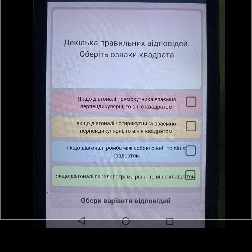 1)Якщо діагоналі прямокутника взаємно перпендикулярні, то він є квадратом