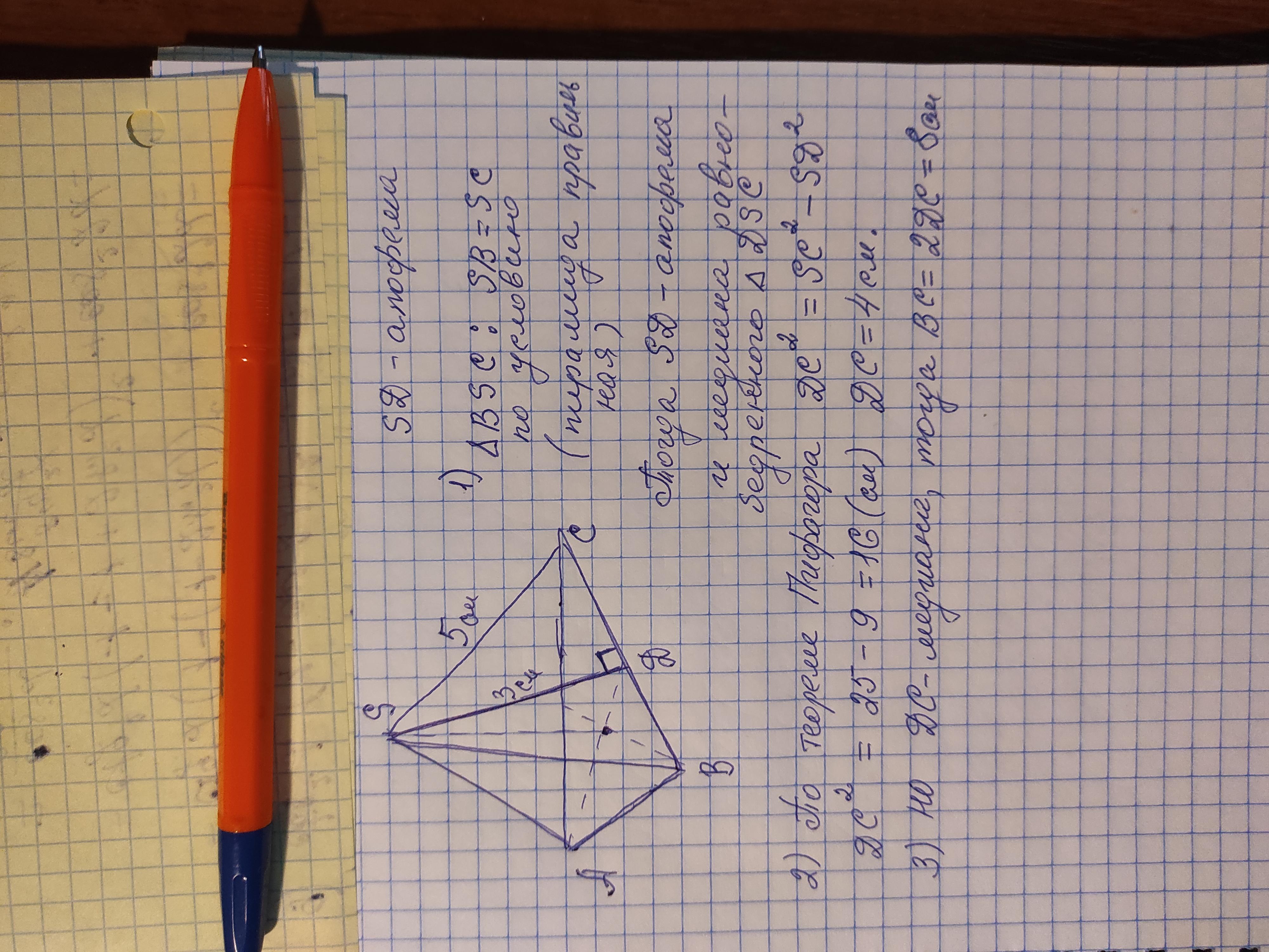 У правильній піраміді бічне ребро дорівнює 5 см, а апофема -3 см. Знайти сторону основи піраміди.