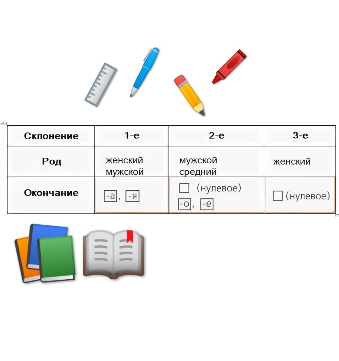 1 склонение существительных. Первое склонение объединяет имена существительные мужского и женского рода с твердой или мягкой основой, которые имеют окончание -а/-я в начальной форме.
