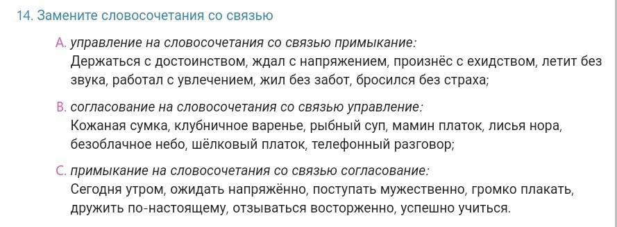 В. Сумка из кожи, варенье из клубники, суп из рыбы, платок мамы, нора лисы, небо без облаков, платок из шёлка, разговор по телефону.