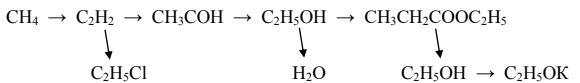 C2H2 + H2O → (H⁺, Hg²⁺) CH3COH (Реакция Кучерова)