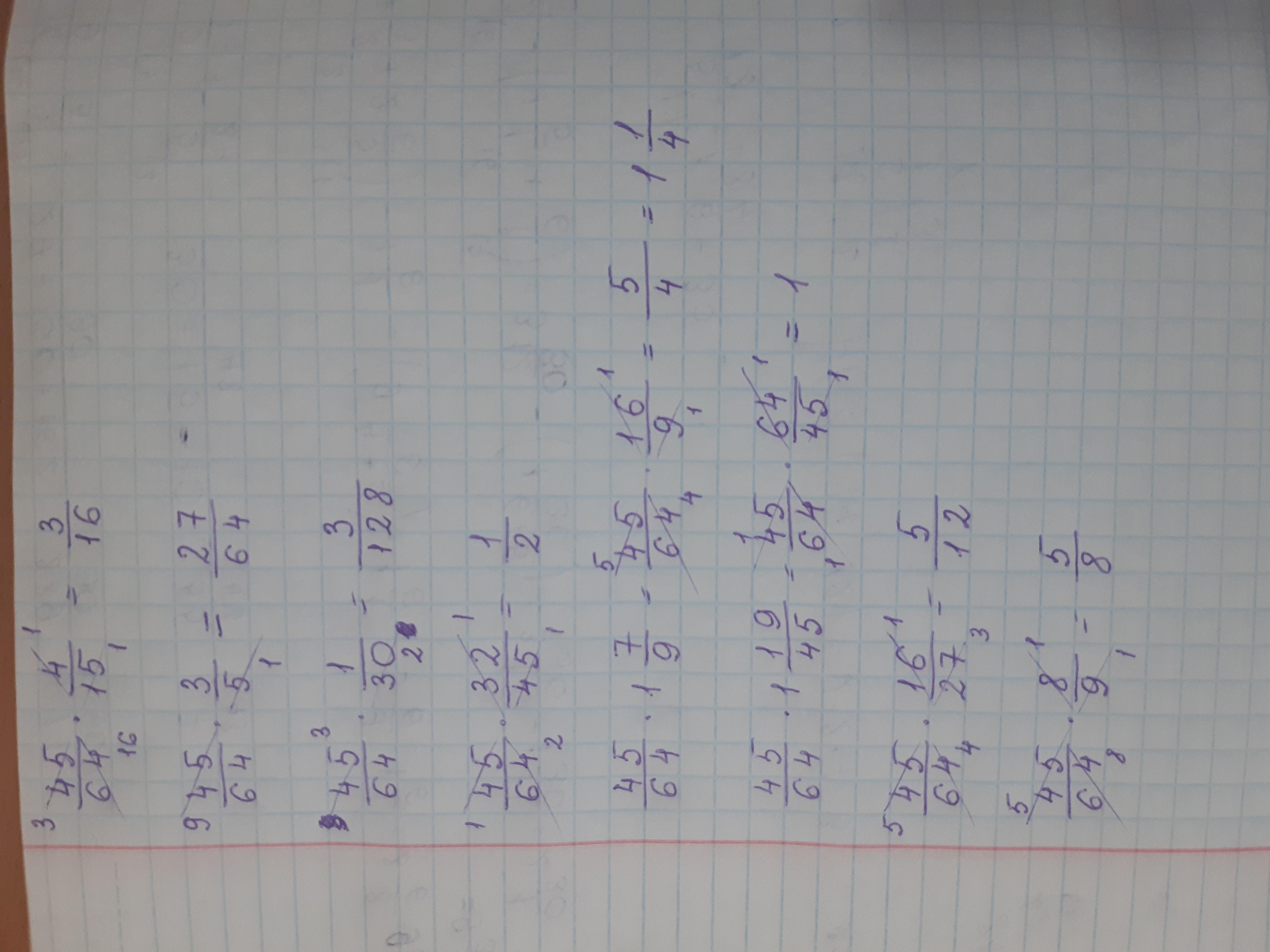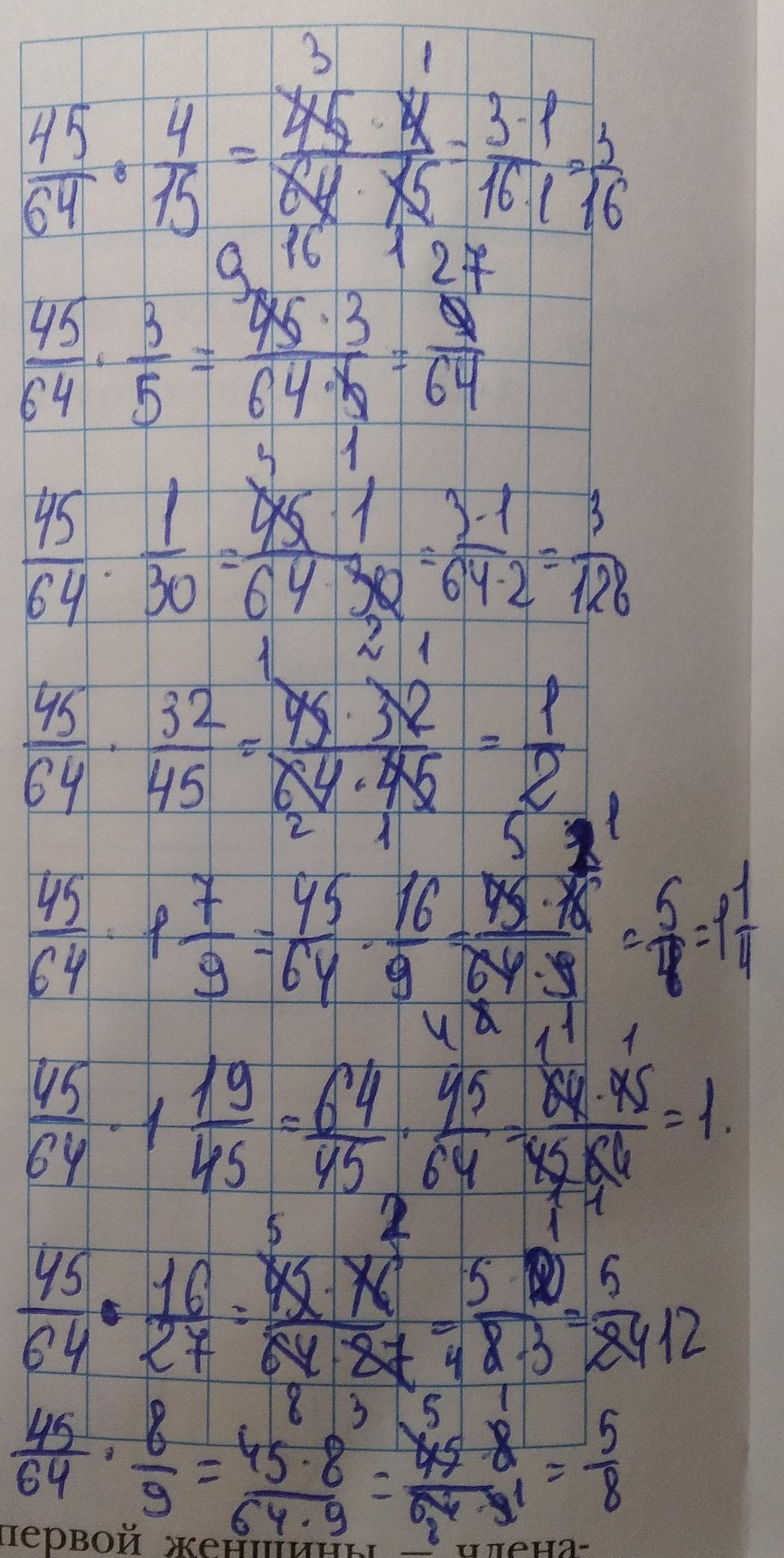 В пустые кружки впишите произведение числа 45/64 и указанных чисел.