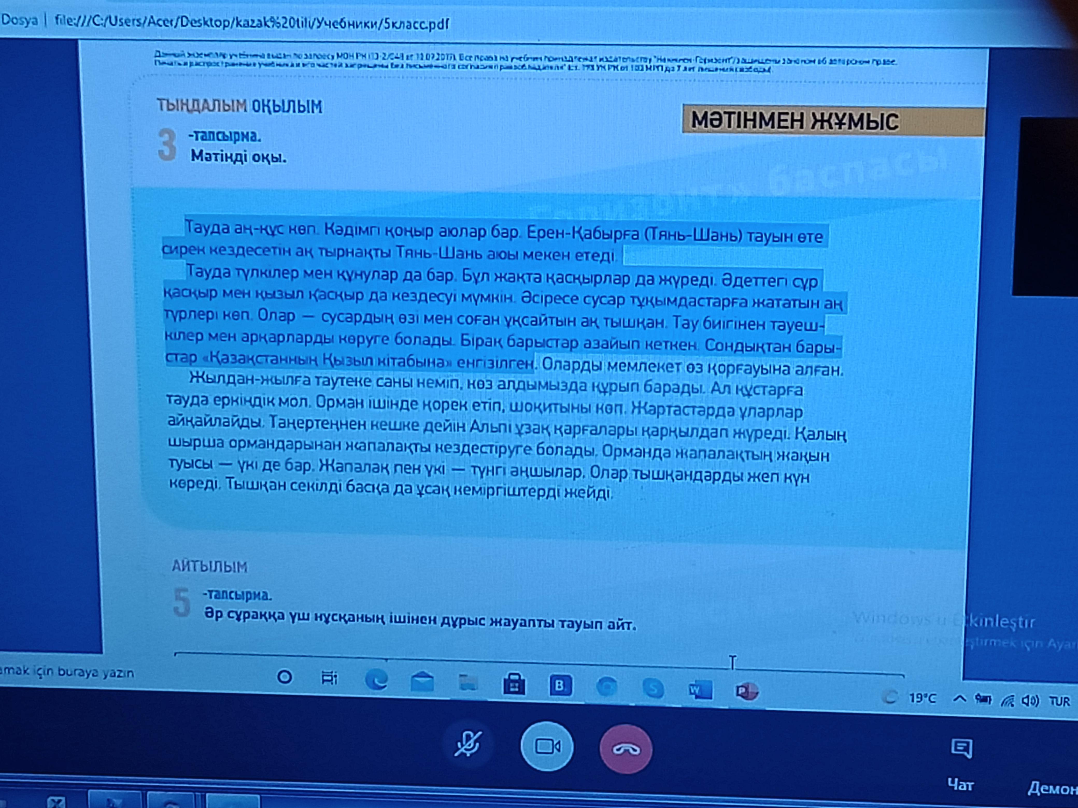 В горах водятся бурые медведи. Гора Эрен-Кабырга (Тянь-Шань) населена редким белохвостым оленем Тань-Шань. Здесь также кочуют волки. Обычный серый воск также содержится в воске. Особенно это касается видов земноводных. Это сурки и мыши. С вершины горы можно увидеть горных козлов и архаров. Но количество леопардов уменьшилось. Поэтому занесен в Красную книгу Казахстана.