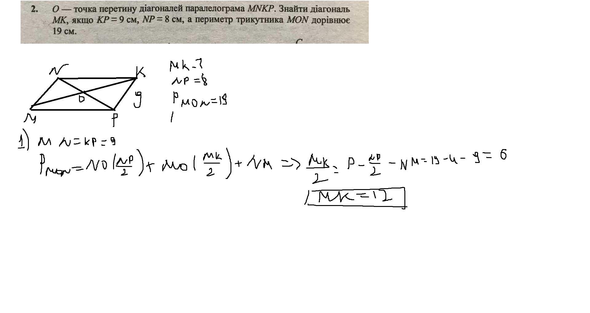 Ответ:Диагонали параллелограмма пересекаясь делятся пополам