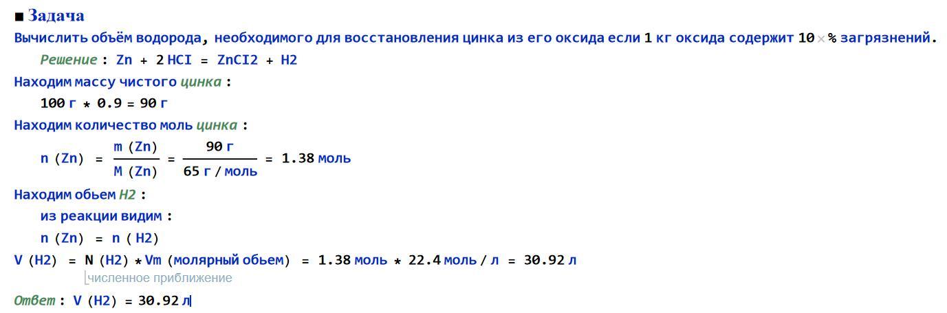 Вычислите объём водорода, необходимо для восстановления цинка из его оксида, если 1 кг оксида содержит 10% загрязнений.